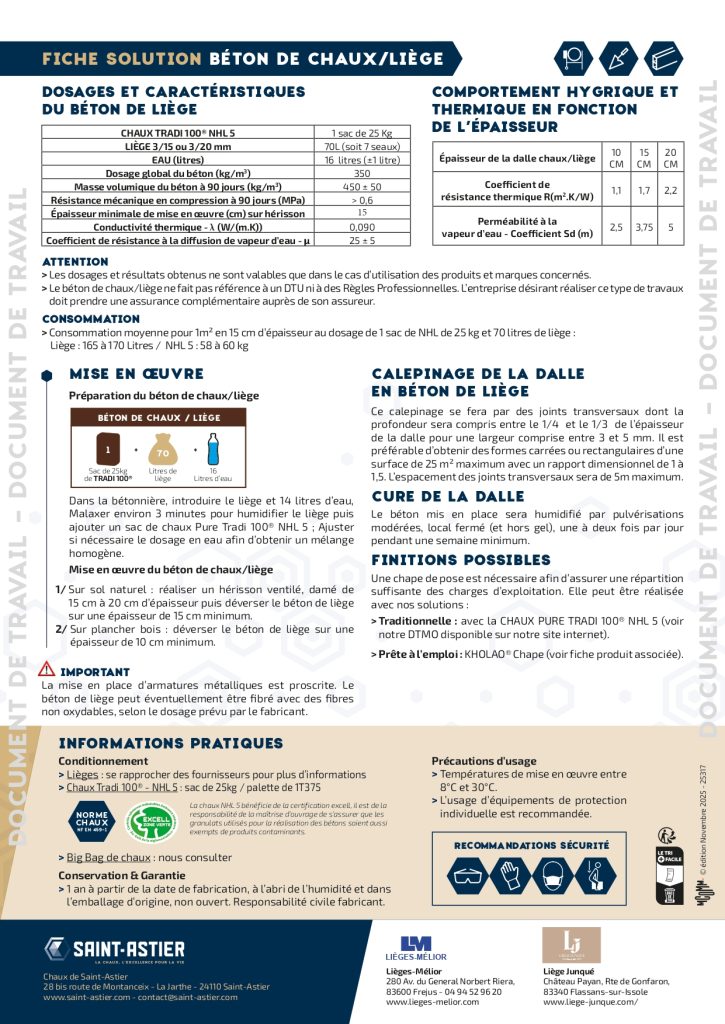 Pour aller plus loin, vous pouvez consulter les fiches en ligne sur le sujet :  https://www.saint-astier.com/produits/beton-de-chaux-liege/